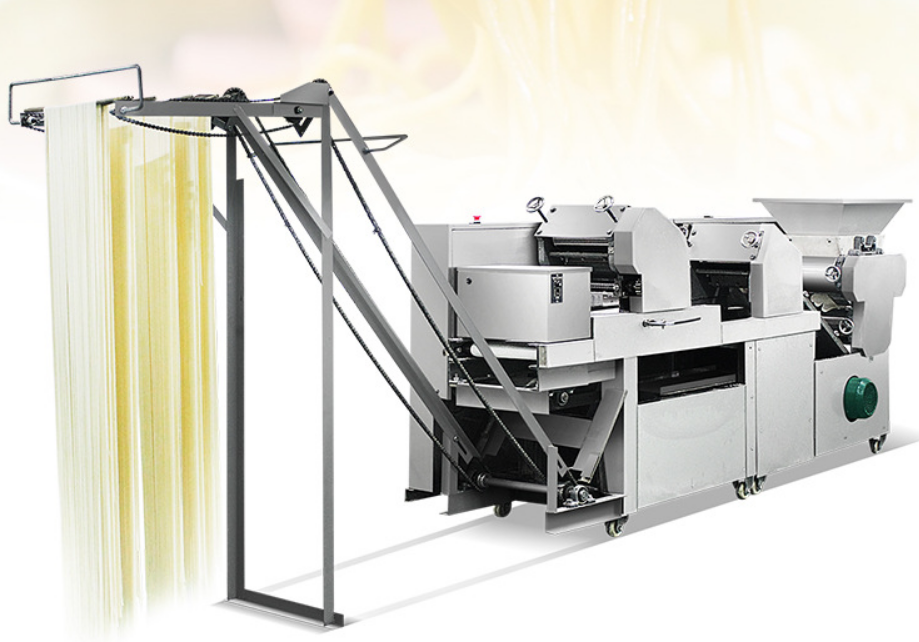 LZMT260五谷雜糧面條機的工作原理是把面粉和雜糧谷物粉經過面輥相對轉動擠壓形成面片,再經前機頭切面刀對面片進行切條,從而形成面條。面條的形狀取決于切面刀的規格,所有機型均可安裝不同規格的切面刀,故一臺機器經過更換不同規格的面刀可以做成各種規格的面條。結構緊湊、使用安全、操作簡單、維修方便等優點。面片經過軋輥的連續壓延,外表光潔,密實均勻,為產出優等掛面創造了先決條件。(全自動掛面機)是一種新型面條流水線設備,該機從進料到出面連續作業,具有高產高效、省時省力、操作簡便等優點,生產的面條韌性好、口感好。中型面條機的特點為:該軋輥表面經過磨床精磨,光滑美觀,軋出的面帶均勻光潔,保證了良好的掛面質量本機設計合理,采用排列式,減速機和鏈輪傳動,噪音小,結構緊湊,人性化設計,工作省力。且便于操作,安全衛生,宜于眼觀。傳動平穩,傳動動力準確高效,還有噪聲音小、無震動、性能優越等特點,可配套小型烘干設備,該機采用全齒輪傳動結構,轉動部位配用滾動軸承,運轉靈活,性能穩定,生產效率高,適用于中、小、大型掛面加工企業的理想產品